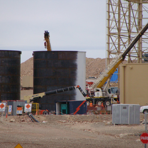 Lavado a presion, primer, masillado y aplicacion esquema de pintura 200 mic Epoxy l en 7 espesadores y 8 tanques.